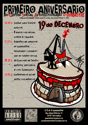O Espazo Aberto Antimilitar convídavos a celebrar un Magosto Antimilitar baixo o lema "Castañas non Bombas" que terá lugar o sábado 12 de decembro a partires das 18h00 na Praza da Princesa. Na festa non faltará música, información e como non castañas, bebida...